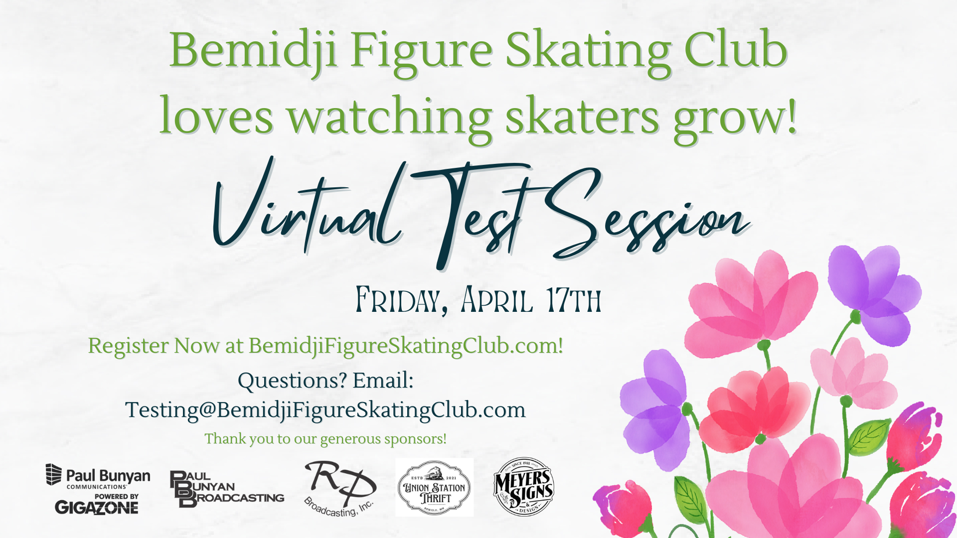 This is an USFSA membership virtual test session for skating skills, singles, pattern dance, and free dance tests for both standard and adult tracks! Registration Closes: Wednesday, April 15th. Video Submissions & Required Papers Due: Friday, April 17th by 4:00 pm Questions? Contact Testing@BemidjiFigureSkatingClub.com.